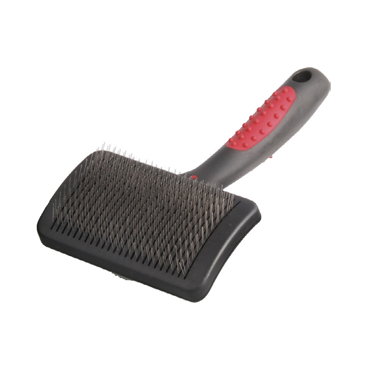 A Popular grooming brush for everyday use to remove matts, tangles and loose dead hair. New patented design combines easy-clean retractable pins with unique curved and pivoting head, instantly adapting to body contours for maximum affect. Available in a range of different pin lengths to suit coat type and length.